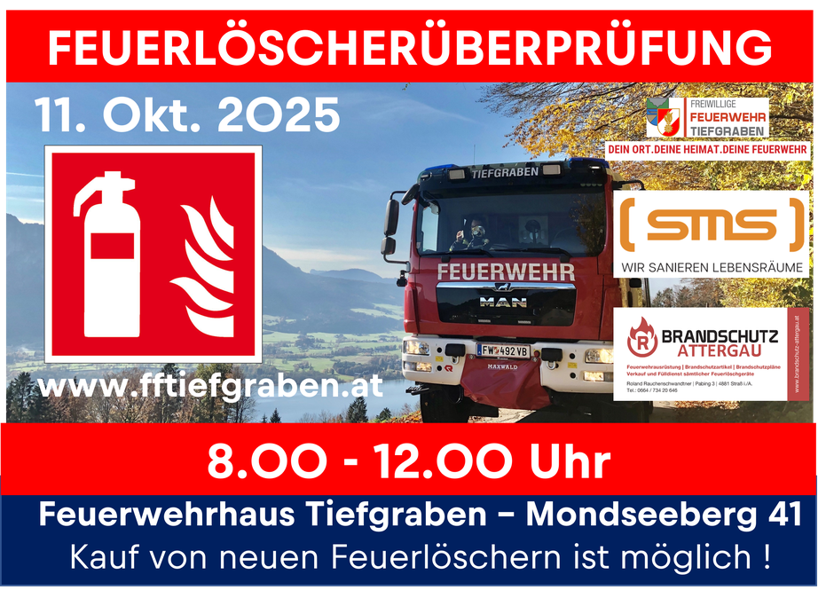Kommen Sie am 11.10.2025 von 8.00 bis 12.00 Uhr ins Feuerwehrhaus zur Feuerlöscherüberprüfung vorbei.